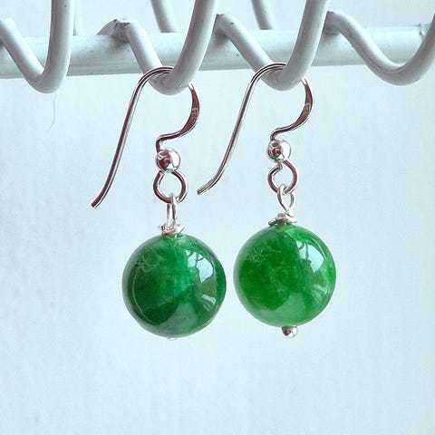 A beautiful pair of Lever Back Earrings made of Platinum Plated 925 Silver and featuring 2.75ct of gorgeous natural Green Jade from China. Green Jade is said to be beneficial for Taurus, Gemini and Virgo. It brings wonderful energy along with taking care of heart health and is associated with the Heart Chakra for its ability to attract love and dispel negativity. Jade is the mystical Birthstone for March in the old Tibetan calendar, capturing the sweetness of spring with the durability of Mars. However, anyone and everyone can wear a Jade stone as it promotes positive thoughts and attracts good luck! Brand New and ready to wear!