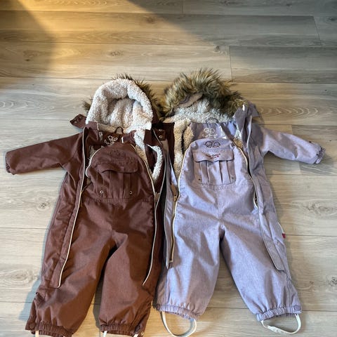 Verdens beste baby vinterdress, votter og sko. Skoen har du til barnet er nermere 2 år. De kan brukes sommer og vinter. På sommer tar du ut ullet og vinter og kalde dager har du det inni. De er vindtette som vottene. Vinterdressen er super myk og har votter/sko du kan brette over pluss du kan åpne dressen helt slik at du slipper å vekke barnet om det sovner.