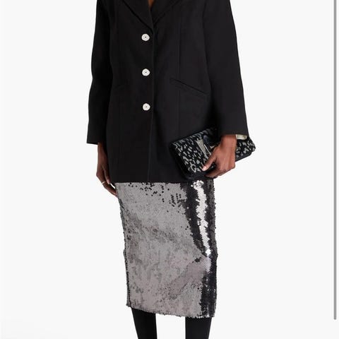 Tidløs og stilren buksedress som passer perfekt til både jobb og fest. Flatterende passform, behagelig stoff og diskré detaljer gir et eksklusivt uttrykk. Lite brukt og i svært god stand.