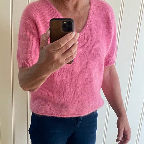 Kjempesøt strikketopp, brukt kun en gang. Strikket med 2 tråder Kid Silk.