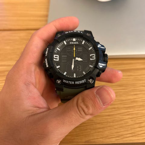 Godt brukt Smael No.1617 sportsklokke lagd av kinesisk klokkeprodusent og er nok lagd for å være mest mulig lik G-shock klokkene men en del billigere