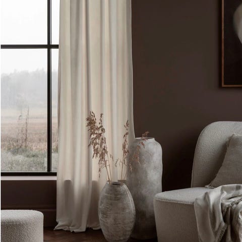 Velourgardin har en flott glans i stoffet og gir et luksuriøst og elegant uttrykk. Den henger tungt og med fint fall. Overflaten på velour er klippet, noe som gir et fint spill i fargen. Velourgardiner passer like godt i et stramt og minimalistisk hjem som i et klassisk eller bohemsk miljø. Gardinen har påsydd multifunksjonsbånd som gir mange opphengsmuligheter.
