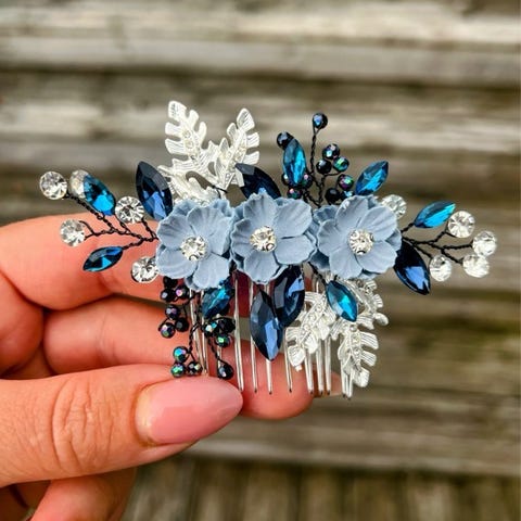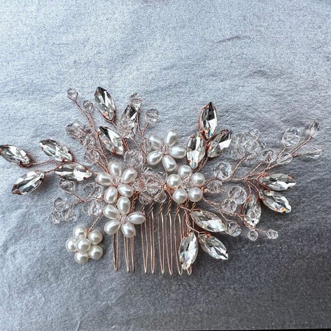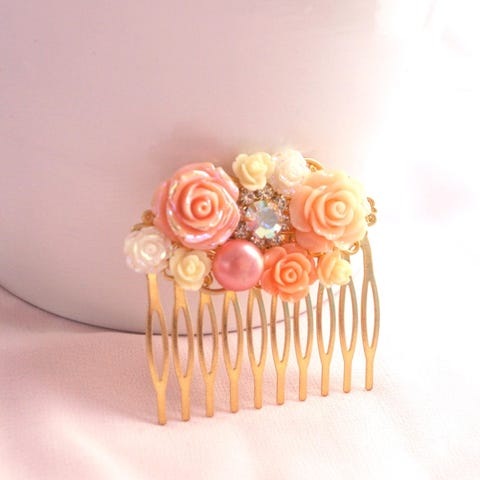 Nydelig vintage-inspirert håndlaget hårspenne. Den består av glass, resin-blomster og gullfarget blad. Den måler ca 9 cm. #bryllup