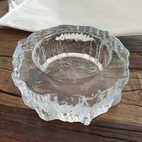 Flott iitala glassfat, formet som en blomst. Blått i bunnen, ca 30 cm diameter.