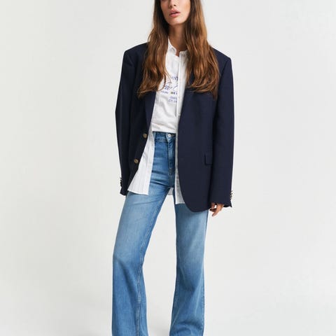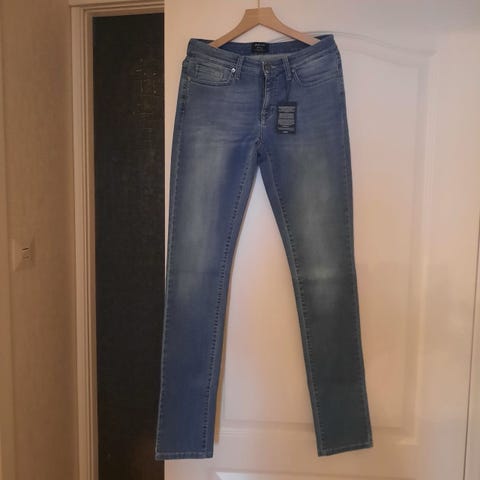 GANT jeans i lyse blå farge, størrelse S med middelshøyt liv W27. Klassisk design med lommer foran og bak.