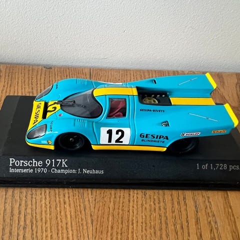 Kul 917K fra løpet 1000km Brands Hatch 1970. Minichamps i 1/43. Førere Hermann/Attwood