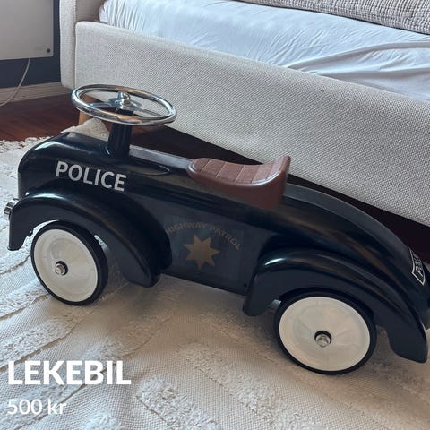 Bilen har karosseri i solid metall og hjul med gummibeleggg som kan brukes inne og ute. Rattet er enkelt å dreie, men går ikke helt rundt. Dette for at bilen skal være så stødig som mulig. Denne gåbilen bidrar til motorisk trening for små, litt ustødige føtter, i tillegg til at den er skikkelig fin og blir en kul detalj på barnerommet.