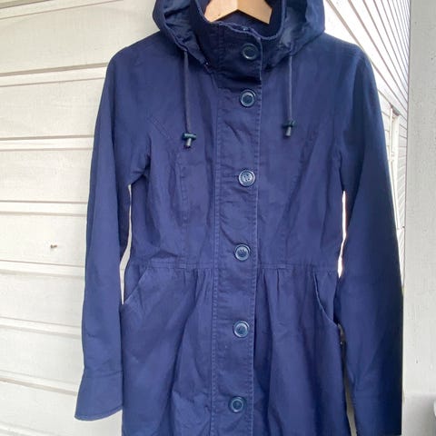 Selger en flott mørkeblå kåpe/parkas fra United Colors of Benetton i størrelse 40.