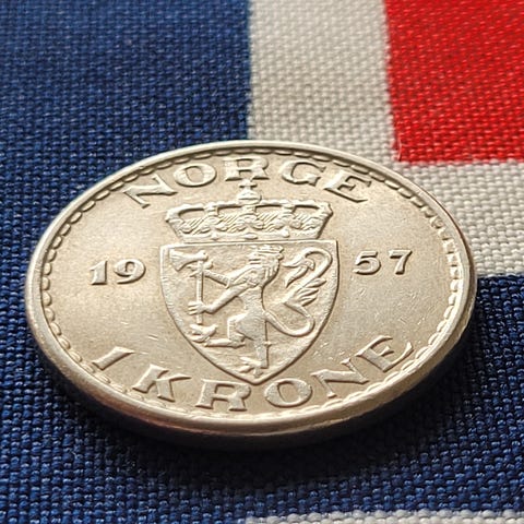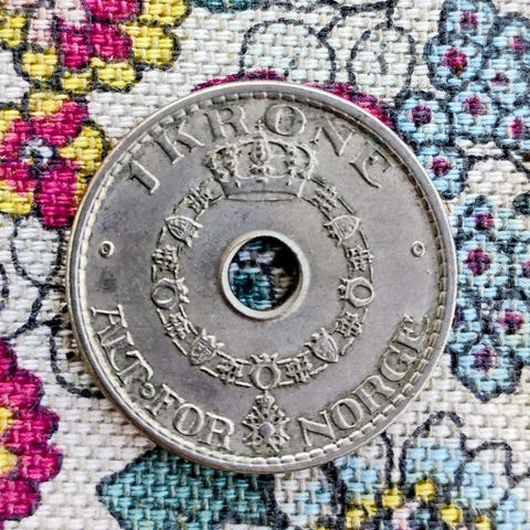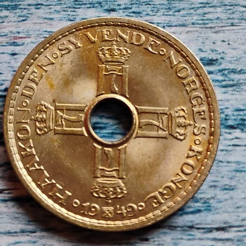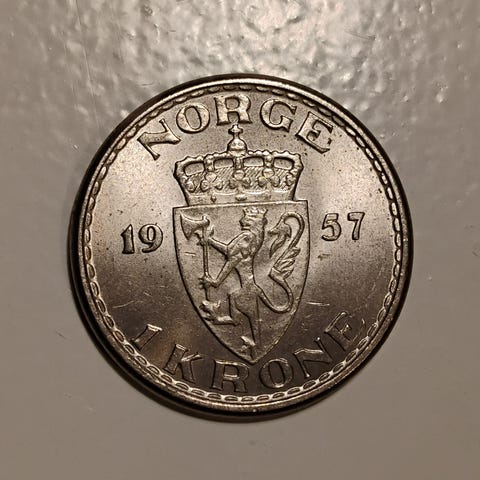 Usirkulert 1 krone 1957 fra Haakon VII sin tid 🇧🇻