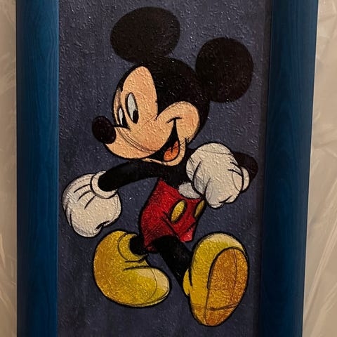 Disney Mickey Mouse og Donald Duck veggkunst sett med to rammer. Hver ramme har et bilde av henholdsvis Mickey Mouse og Donald Duck i fargerike detaljer. Passer for dekorasjon i barnerom eller andre rom som ønsker et Disney-tema.