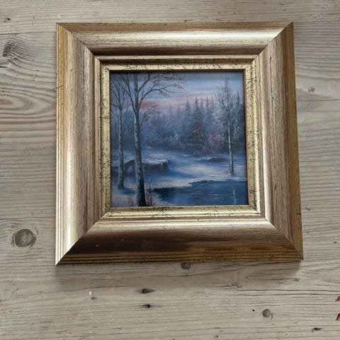 Selger tre flotte bilder i ramme med naturmotiv.