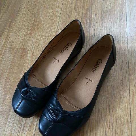 Clarks pensko i størrelse 39 for dame. Skoene er svarte og har en kombinasjon av glatt og teksturert materiale. De har en lav hæl og gummisåle for bedre grep. Innvendig er skoene polstret for komfort.