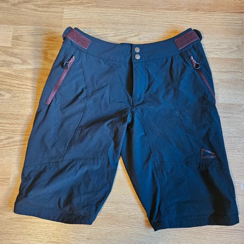 Shorts fra Norheim. Borrelås i siden for tilpasning. Lommer med glidelås. Åpning langs lårene for lufting.