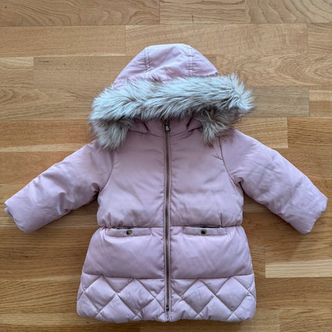 Zara Kids vinterjakke i størrelse 122 for jente. Jakken er rød og har hette med fuskepels. Fuskepelsen kan tas av. Den har to frontlommer med klaff og knapp, og to vanlige llmmer. Jakken er foret. Stor i størrelsen. Ingen merker/skader. Fremstår som ny.