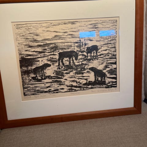 Signert med julehilsen fra Brit og Hans Gerhard nederst på bilde. Mål ytteramme: 37 x 30 cm. Kan sendes.