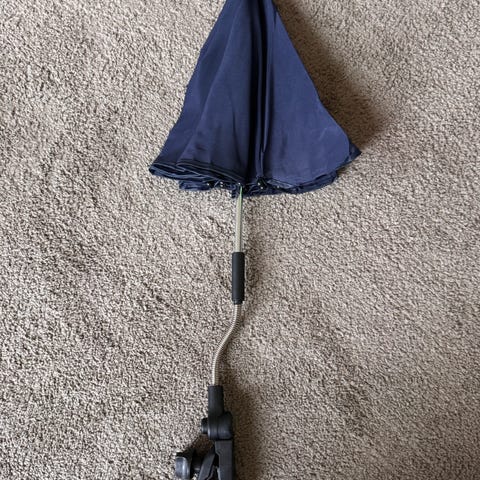 Paraply til barnevogn, brukt et par ganger bare. Festes enkelt på vognen