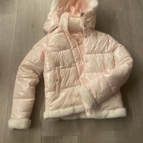 Jakken er merket str. S, og jeg tenker den passer fra str. 158 og opp til XS i damestørrelse.
