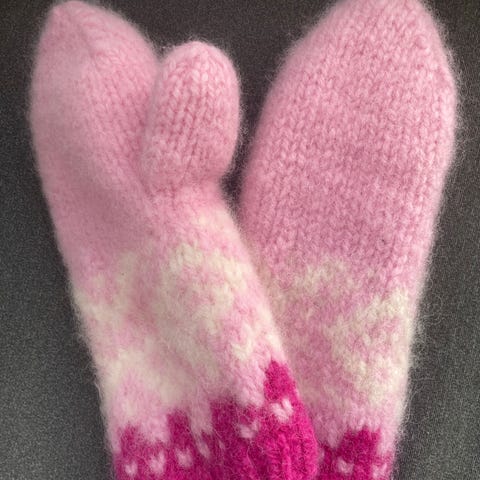Strikka med fritidsgarn og tova i vaskemaskin på 40 grader. Romslige. Har tillatelse til å selge produkter strikket i Marius-mønster.