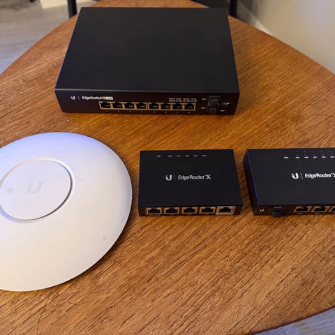 Ubiquiti UniFi Security Gateway er en router med fire Gigabit Ethernet-porter. Den er designet for å gi sikker nettverkstilkobling og administrasjon i et enterprise-miljø. Enheten støtter avanserte nettverksfunksjoner og er kompatibel med UniFi-nettverksinfrastruktur.
