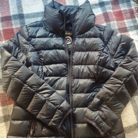 Pent, og lite, brukt dunjakke. Står ikke str, men jeg er en M/38.
