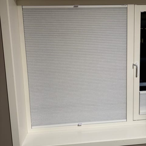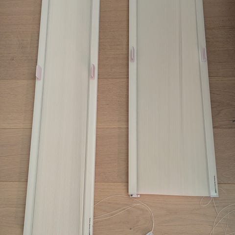 3 stk hvite opp/ned plissegardiner fra Sandnes Markise. I god stand, selges pga vi har valgt ny farge på vinduskarm. Pris pr stk.