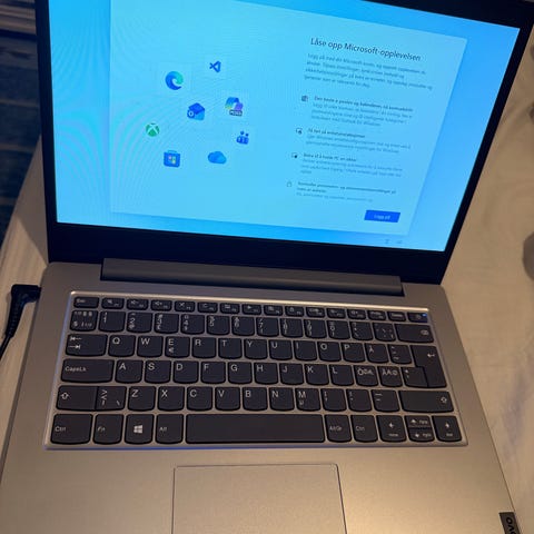 Lenovo Ideapad 330S bærbar PC med 14 tommers skjerm i sølvfarge. Enheten har et standard tastatur og en touchpad. Passer for generell bruk som kontorarbeid, nettlesing og multimedia. Designet i et slankt og lett chassis.