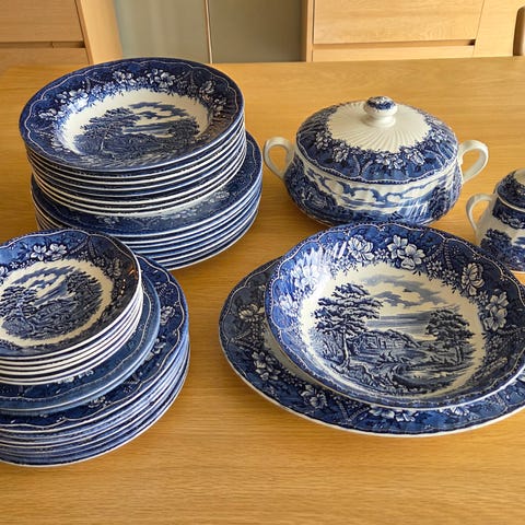 Flott servise fra England, Old Castle i super stand, ingen skader eller krakeleringer som jeg kan se.