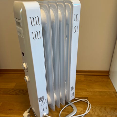 Dimplex oljeovn i hvit farge med elektrisk oppvarming. Har flere varmeelementer og hjul for enkel mobilitet. Utstyrt med termostat og kontrollpanel for justering av varmeinnstillinger. Passer for oppvarming av rom i hjem eller kontor.