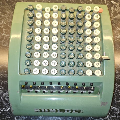 Regnemaskin fra Alf G. Johnsen (Oslo), fra 50-60 tallet (?) selges. Strømtilførselsledning mangler.
