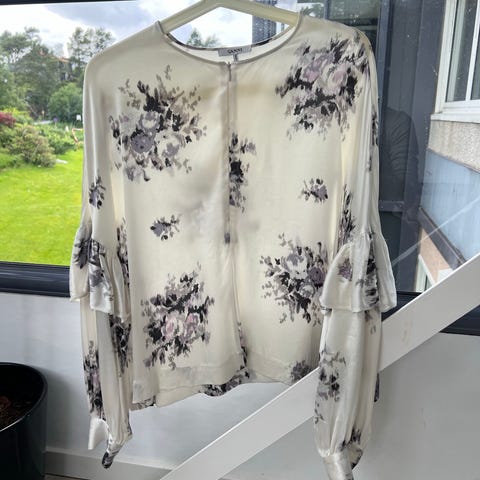 Ganni langermet topp i svart farge, størrelse S. Laget av bomullsmateriale. Trykkdetaljer på ermer og rygg.