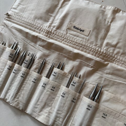 PROJECT 7 er den perfekte pinnemappen for å organisere dine rundpinner. Den har 6 lommer med trykknapper for å holde de runde nålene trygt. Bak disse lommene er det åpne rom hvor du kan oppbevare strikkeoppskrifter eller lignende. Et elastisk bånd gjør at du kan holde målebåndet ditt tilgjengelig, og det er 6 hull i læret som passer til 3 nåler. Til slutt er det en glidelåslomme der du kan oppbevare saksen din og annet løst strikketilbehør. Hele mappen klappes sammen og festes med et trykk, noe som gjør det enkelt å ta med seg de viktigste strikkeverktøyene på tur.