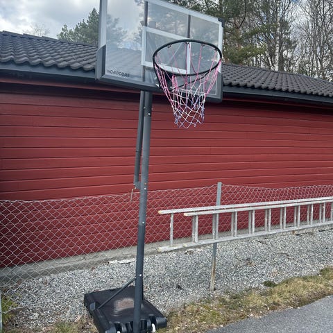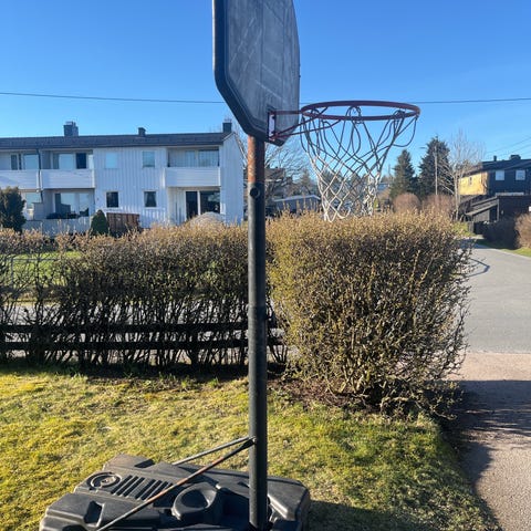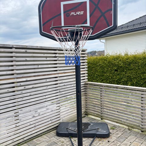 Basketballstativ kjøpt hos XXL for ca 6000,- Stått i garasjen om vinteren. I god stand, håndtak noe knukket men fungerer. Ringhøyde 2,30-3,05. Solid stål, fot fylles med vann for stabilitet.