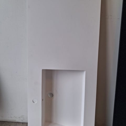 Kompositt benkeplate i hvit farge med grå prikker. Mål: 40x120 cm. Materialet er slitesterkt og egnet for bad eller arbeidsbenk. Passer til ulike innredningsstiler.