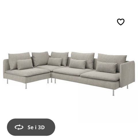 Selger en 4-seter sofa fra IKEA. Trekket er noe falmet, men sofaen er pent brukt. Kom gjerne innom for å se på den. Hjørnet har hull i trekket på begge sider.