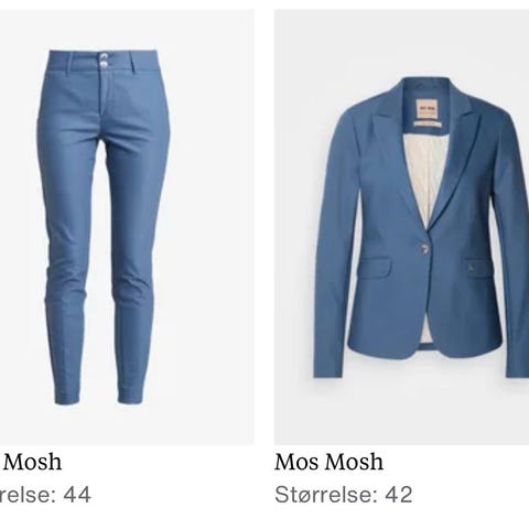 Mos Mosh Elaz Blazer i grønn farge, størrelse 46. Syns denne fremstår som litt liten i str. Jeg bruker 42/44 til vanlig.