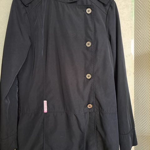 Kari Traa Andre jakker i blå farge, størrelse S for kvinner. Jakken er designet for damebruk og har hette og flere lommer. Materialet og detaljer er egnet for utendørs bruk. Kjøpt i Finland.