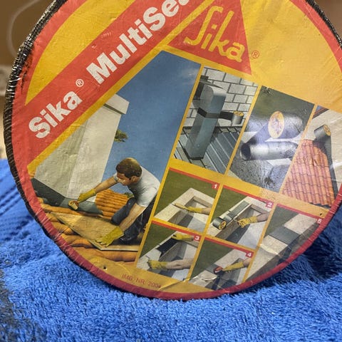 Sika MultiSeal BT tetningsbånd brukt for tetting og isolering i konstruksjoner. Produktet er laget for å gi pålitelig tetting rundt rørgjennomføringer og andre bygningsdetaljer. Materialet er fleksibelt og tilpasset for bruk i bygg- og anleggssektoren.