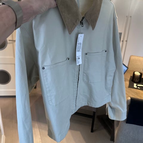 Jakke i kraftig bomull, kjøpt i Gøteborg for et år siden. Men ble aldri brukt.