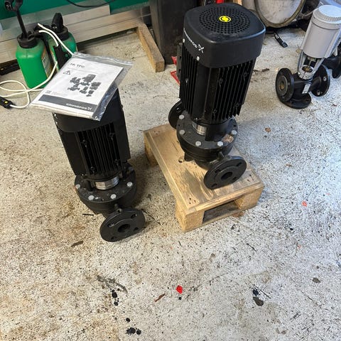 Dette er en eldre Grundfos sirkulasjonspumpe type UPS 15-35 x 21.