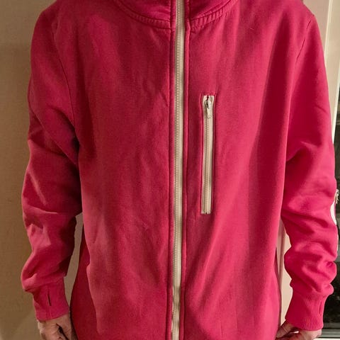 Stor og romslig kosedress og passer fint også til en mediumperson. God beinlengde med innstrammingsmulighet/innsnøring nederst.