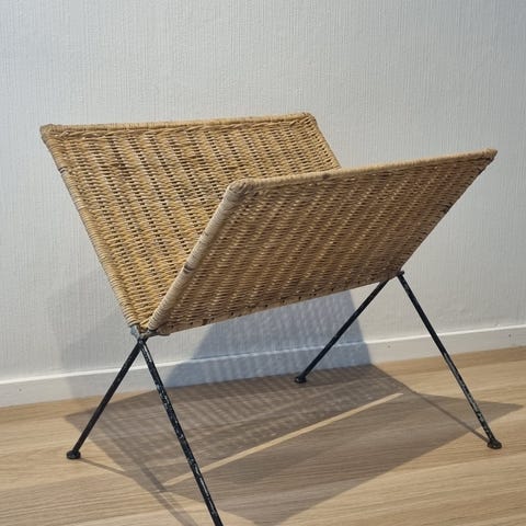 Perfekt for å organisere aviser, blader eller dekorative gjenstander i stuen eller på kontoret. Holderen er i god stand med en vakker, blank finish som gir et luksuriøst preg til ethvert rom, som passer perfekt i både moderne og retroinspirerte hjem. Viser noe forventet bruksslitasje på overflaten, det man vil kalle vintage patina.