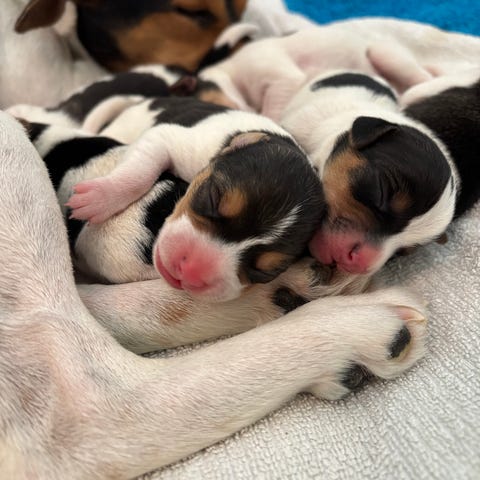 Hei vi er 3 valper som snart søker nye hjem😊 vi er snart 7 uker gamle, vi er registrert i Norsk Kennel Klubb og vil bli vaksinert og chippet til tirsdag 14/10. Vi er da leveringsklare helga etter😊 vi er oppvokst med andre hunder, og det har vært flere barn som har hilda på oss så det er vi også vant med. Vi har vært på flere bil turer og det har også gått fint.