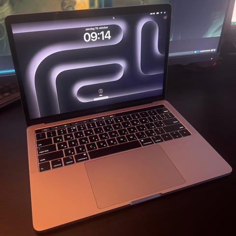 Apple MacBook Pro Retina 13-tommers laptop fra midten av 2014 med macOS Big Sur operativsystem. Utstyrt med en 2.4 GHz Dual-Core Intel Core i5 prosessor, 8 GB 1600 MHz DDR3 RAM, og en skjerm med Retina-oppløsning. Enheten har en sølvfarget aluminiumsfinish og standard tastatur. Passer til generell bruk som kontorarbeid, nettlesing og medieavspilling.