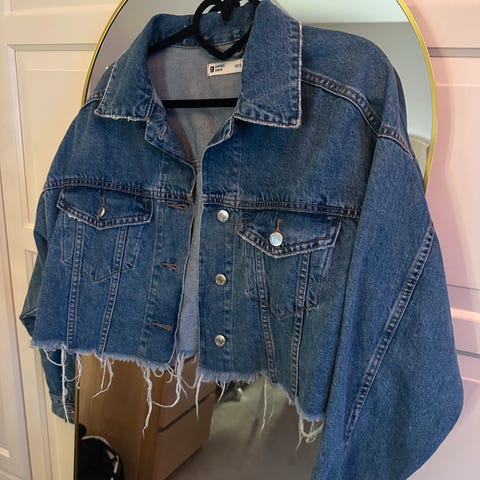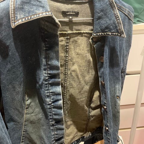 Vila Denim Jakke «olajakke» i blå farge, størrelse M. Jakken er laget av denim materiale og har knappelukking foran. Den har to brystlommer med klaff og knapp, samt en klassisk krage. Jakken er designet for kvinner og passer til ulike anledninger som ytterjakke eller lag-på-lag plagg.