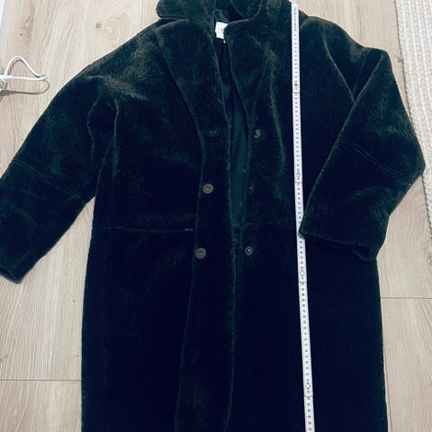 Selger en fin, svart ullkåpe i knelengde. Kåpen passer både til hverdagsbruk og mer formelle anledninger. Den er laget i en varm og behagelig ullblanding, perfekt for høst og vinter. Den er S, men passer mer M-størrelse.