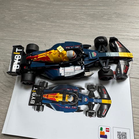 Komplett sett inkl bruksanvisning, minifigur og ekstra sett med hjulkapsler. Demontert.