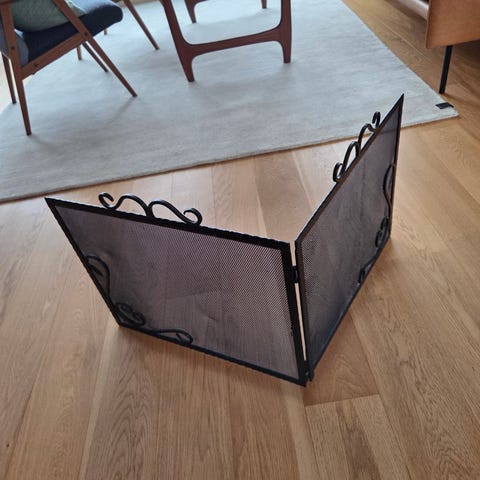 Gnistfanger i svart metall og messing.