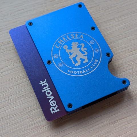 RFID-sikker, aluminiumskortholder, Liverpool, YNWA, rød anodisering, lasergravering, fotballfan, gaveidé, slankt design, lettvekt, kontaktløst vern, limited edition, eksklusiv, metall pengeklemme, supporterutstyr