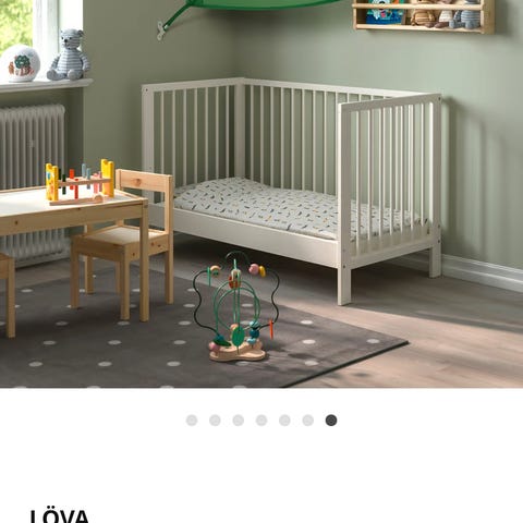 Hvis du vil lage en koselig krok på gulvet der barnet ditt kan leke, lese eller hvile, kan du feste sengeteltet til veggen og kombinere det med PLUFSIG sammenleggbar treningsmatte, som selges separat.