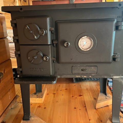 kan brukes som komfyr med kokeplater og en liten stekeovn.